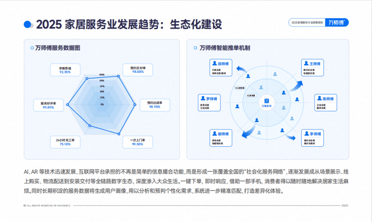 AI、AR技术飞速发展,互联网平台承担的不再是简单的信息撮合功能,而是形成一张覆盖全国的“社会化服务网络”,逐渐发展成从场景展示、线上购买、物流配送到安装交付等全链路数字生态,深度渗入大众生活。