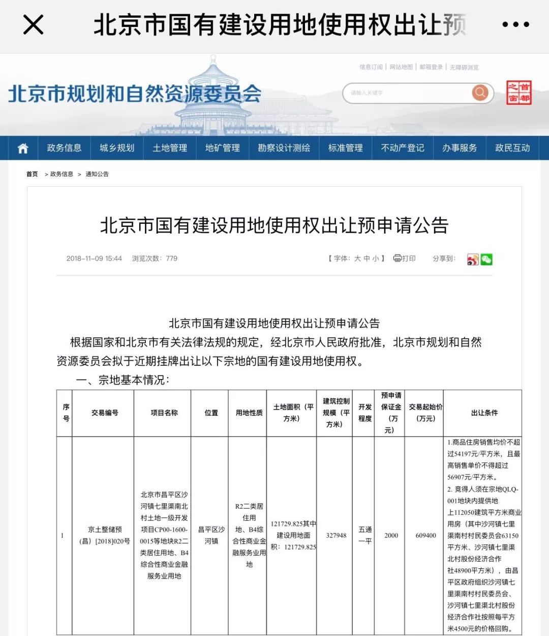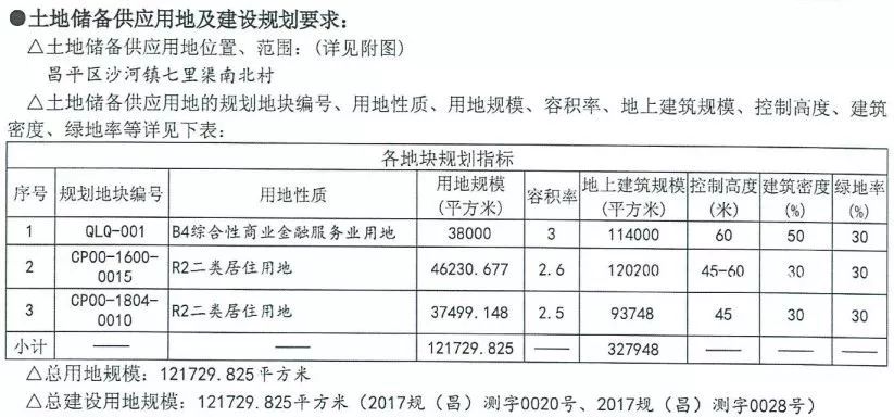 此外,竞得人须在宗地QLQ-001地块内提供地上约11.21万建筑平方米的商业用房,其中沙河镇七里渠南村村民委员会约6.32万平方米,沙河镇七里渠北村股份经济合作社4.89万平方米,由昌平区政府组织沙河镇七里渠南村村民委员会、沙河镇七里渠北村股份经济合作社按照每平方米4500元的价格回购。