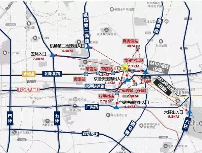 附近有朝阳北路、京通快速路、东五环、机场第二高速、通顺路、东六环。