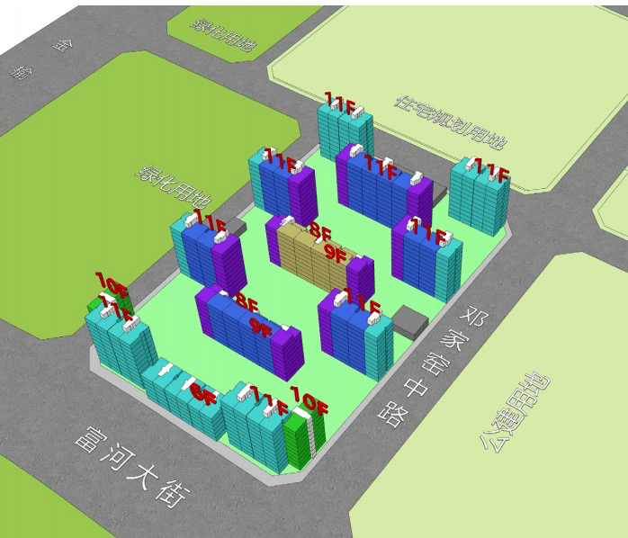 和光煦境整个社区共8栋住宅楼,楼高6层-18层,规划406户,三种户型99-115-170平米。容积率2.5,销售指导价8.5万/平。