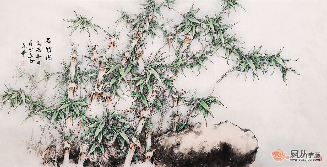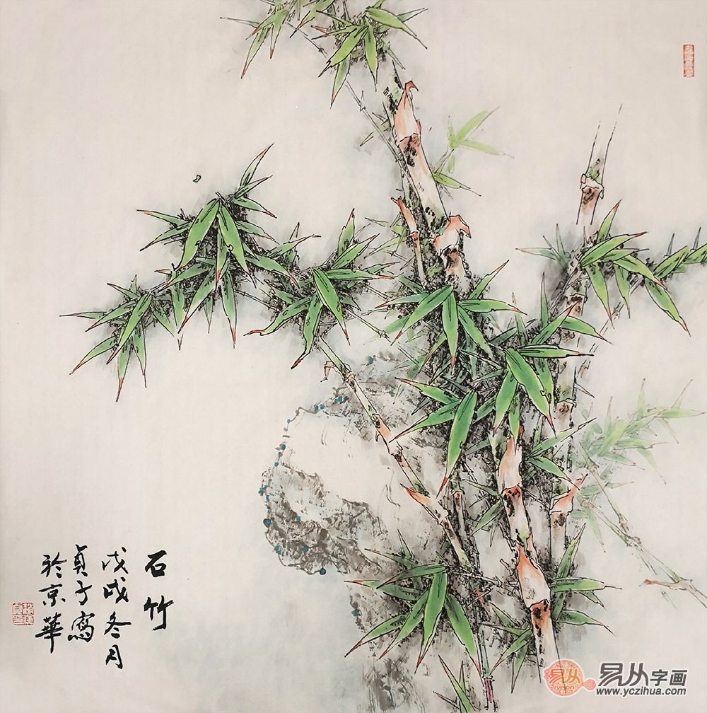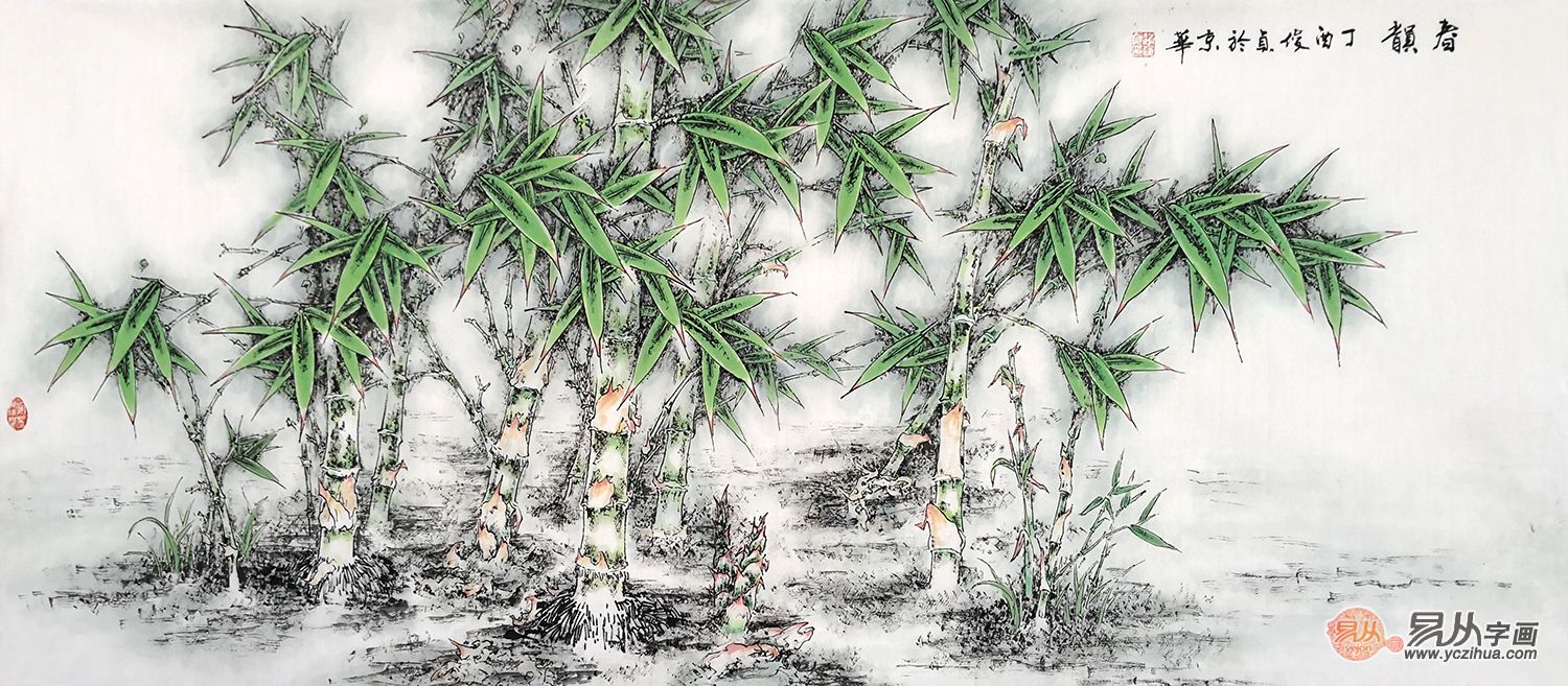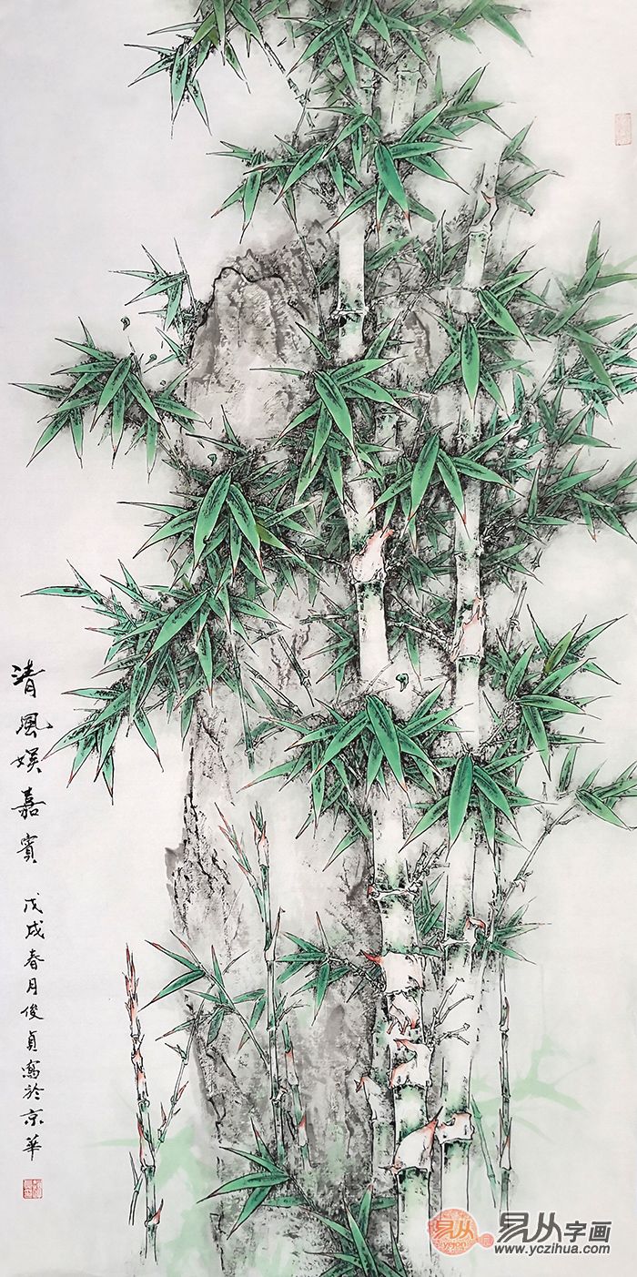 赵老师画得竹,从写意到工笔到兼工带写,从墨竹到彩竹到浅绛到重彩。几十年下来,大幅小幅算起来总有上千余幅。走进他的工作室就象是竹的海洋,象是竹的森林。大家尊称他为“竹大哥”。 赵老师画得竹子可以用很多词来形容:自然,清新,灵动,俊秀。挺拔,利落,干练,骨力等等。但在我看来,最淮确的形容,莫过于一个词“画如其人”。