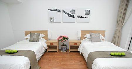 走进公寓样板间内,可以看到公寓整体采用浅色调风格,白色墙壁配深色复合木地板,浅色家具,搭配颇为雅致,卧室与客厅均挂有篆刻与书法装饰画,凸显中国特色。卧室布置简单但不失温馨,为接待各国运动员,两张大床长度达到2米20,工作人员介绍说,为了让姚明那样身高的巨人睡着舒服,床尾还能增加一张特殊设计的长凳,可以再增加床的长度。