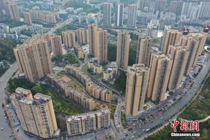 图为9月30日,贵州务川,航拍一处房地产楼盘。(无人机照片) 中新社记者 瞿宏伦 摄