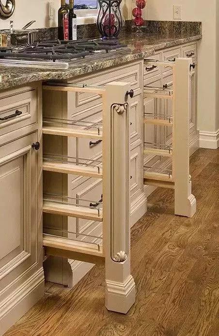 除了以上常见的,厨房的拉篮还有着很多的收纳可能性,各位可以根据自家的实际需求来搭配设计!