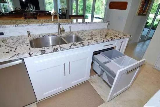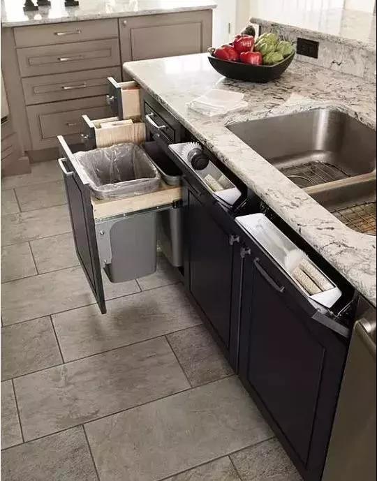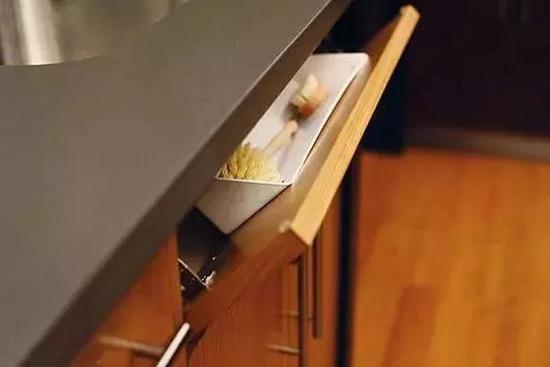 厨房的垃圾基本是每日的都清的,但一些喜欢整洁大方的人,也会考虑把垃圾桶收纳到橱柜里面。