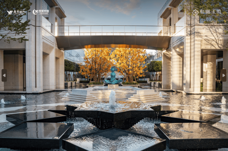 一进安和门礼,以约110米超级门面构筑威仪入口;二进安和中庭,斯卡帕叠级水景与女孩雕塑静置水畔,艺术感宁静本心;三进安和水轴,法式艺术造景过渡礼序与自然;四进安和花园,台地花园水幕静谧,浓荫私语;五进安和山荫,以奢石筑境,漫享雅致聚场;六进安和连廊,回廊哲思,观览下沉水院,俯仰皆景。