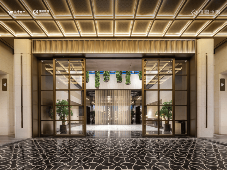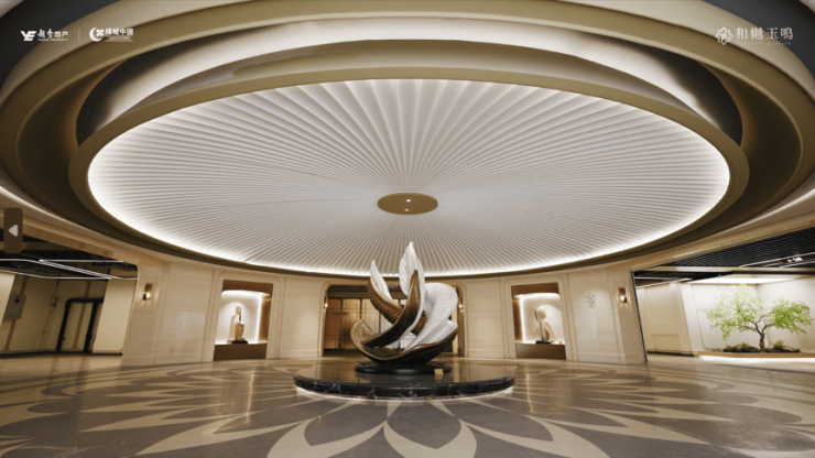 和樾玉鸣创造的“卍字荷花纹”贯穿社区始终,源自圆明园“万方安和”,寓意高洁、和美与生生不息。从入口景墙、地面铺装,到园区廊架雕饰、艺术小品等,皆可见其优雅形态。