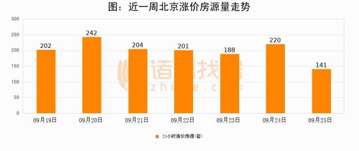 根据诸葛找房数据显示,北京24小时涨价房源量为141套,较09月24日减少79套,环比下降35.9%。与此同时,涨价房源占比小幅回落,对于购房者来说是一个入市窗口期,购房者可抓住时机入市。