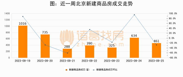 【北京成交日报】09月25日新房成交461套、二手房825套;涨价房源141套
