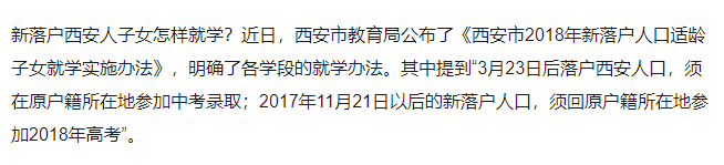 就像曾经落户暴增的西安,“新西安人”就遇到过要求回原户籍参加中考或高考。