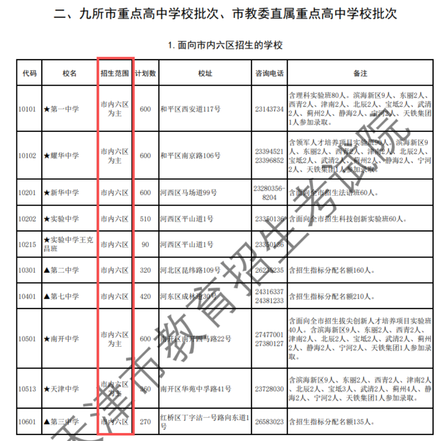 而市内六区的高中,招生范围都是以市内六区为主,其他区也会分配一些名额,但是名额极少。