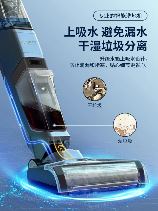 浦力适洗地机重点优化了分离系统,无论是干垃圾还是湿垃圾,清洁过程中可以同步处理,清洁完成后还能自动分离,轻松解决干湿分离问题。