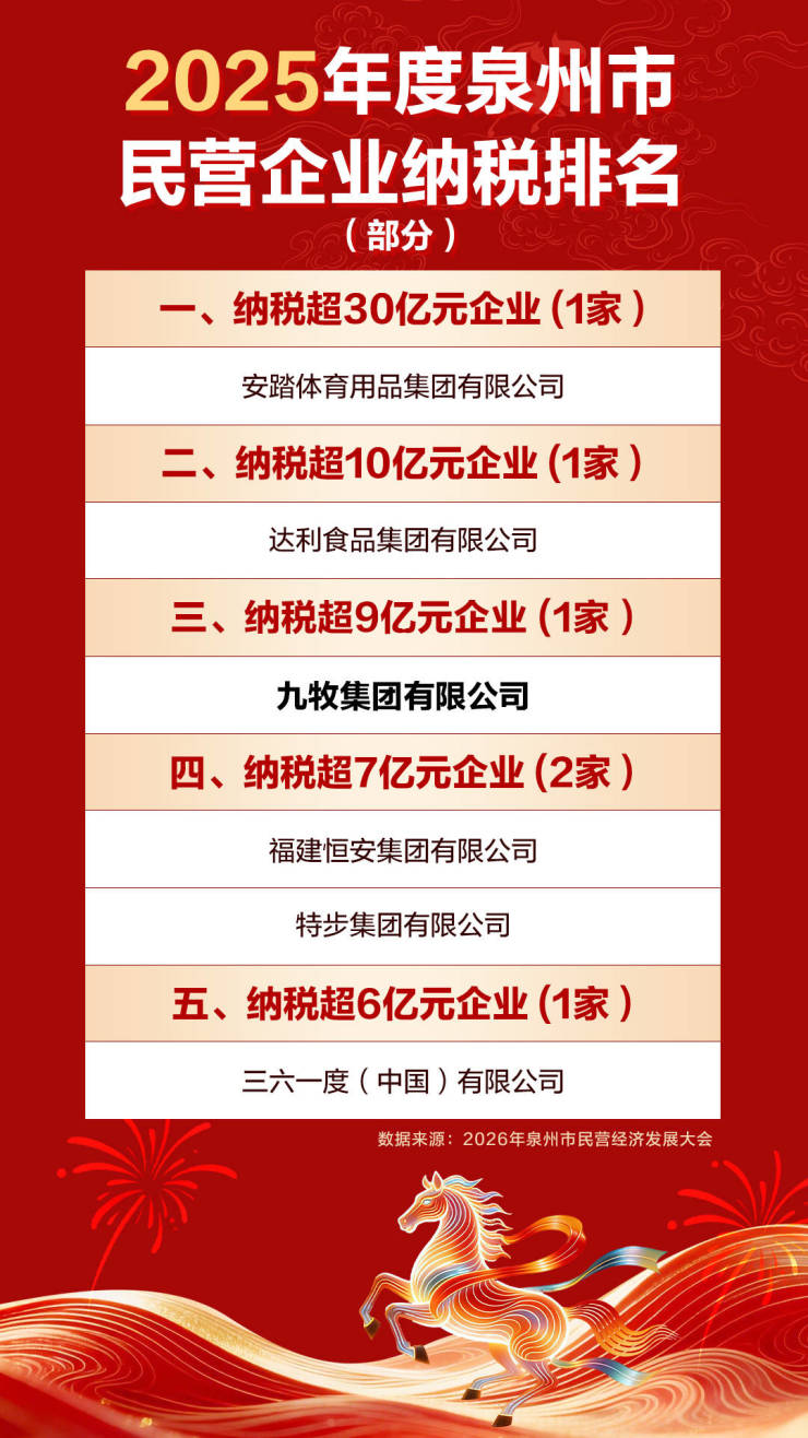 重磅!九牧上榜2025年度泉州民营企业纳税前三!