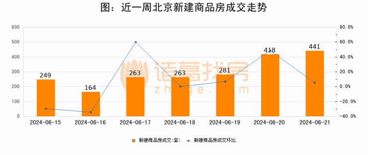 【北京成交日报】06月21日新房成交441套、二手房797套;涨价房源162套