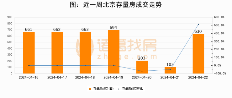 【北京成交日报】04月22日二手房630套;涨价房源130套