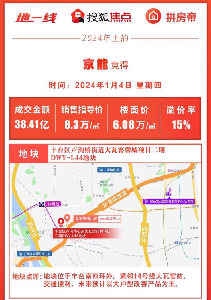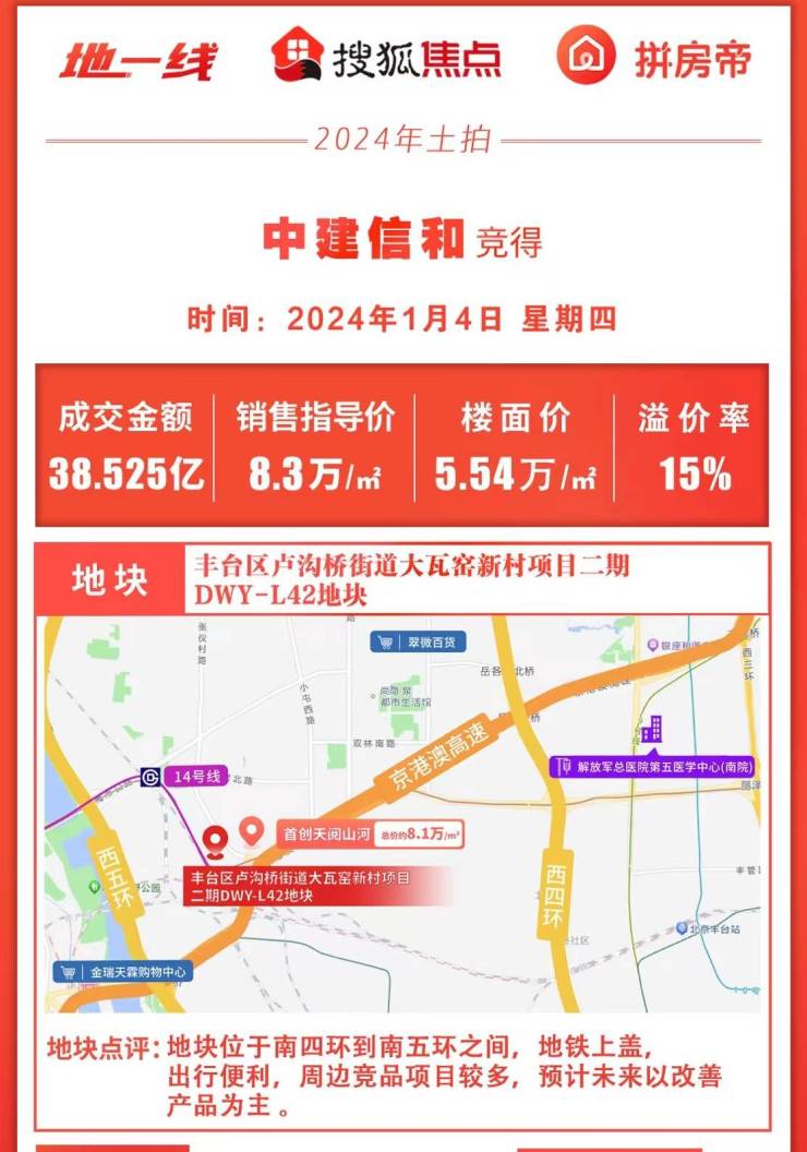 2024年北京首场土拍4宗地块成交 丰台临铁地块指导价8.3万/㎡