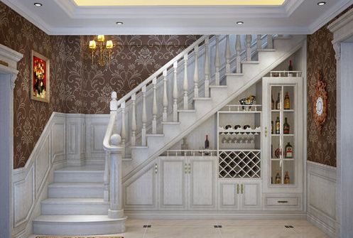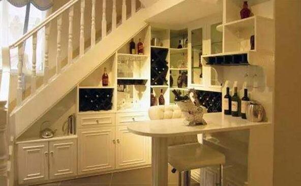 现在朋友们都非常的享受生活,喜欢小酌几杯,那么小编建议你将楼梯下放改造成酒柜吧,不占用空间,网格状收藏能力不错,能将东西很好的归类放置。而且酒柜的设计也能使得整个楼梯变得十分的高大上,提升不少档次呢!