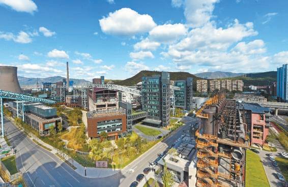 北京冬奥会上,跟着首钢滑雪大跳台一起成为“网红”的,还有运动员背后的首钢工业遗存。首钢将时尚、绿色元素融入其中,实现工业风貌、科技文化与自然山色优质融合。原为炼铁原料区的西十筒仓成为北京冬奥组委的办公地,老工业厂房被改造成冬奥训练场馆,“功勋高炉”3高炉变身多功能秀场,老电厂改造为香格里拉酒店……外国运动员评价所说的“疯狂的烟囱”,正是首钢工业遗存保护利用带给人们的直观感受。