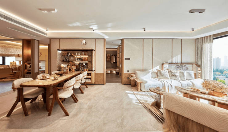 真正的改善,源于对家庭结构的深刻洞察。臻园四居产品采用创新四叶草布局,实现南向三面宽、LDK一体化厅堂、U型明厨及套房主卧等高标配置。精装层面集结汉斯格雅、唯宝、大金等国际一线品牌,从功能到美学,为菁英家庭提供“一步到位”的完整生活解决方案。