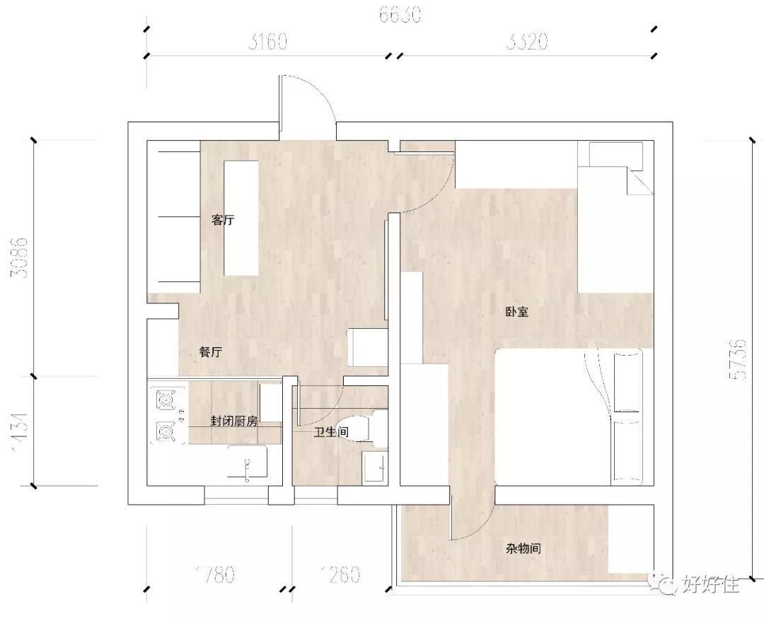 住友 @吴粉丝,和妻子土土两年前买下了北京一套57平米的小户型一居室。虽然房子在购入时就已经有了简单的装修,但和别的小户型一样,他们的家也面临着户型不合理,储物收纳,家居布局等难题。