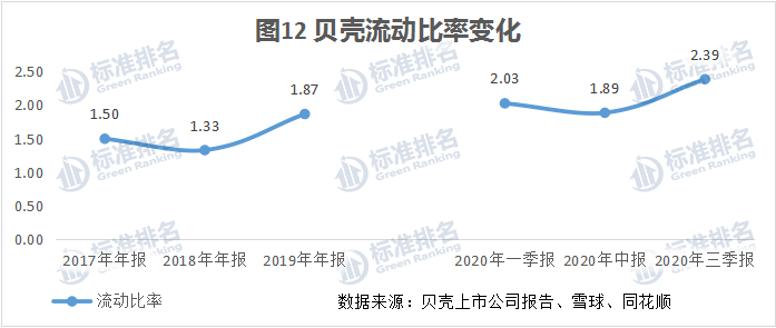关于贝壳财务风险大小,根据贝壳上市公司财报数据计算得出的资产负债率和流动比率可以参考图11和图12: