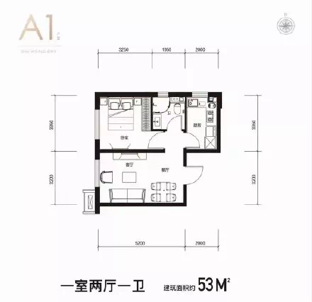 53㎡一室两厅一卫