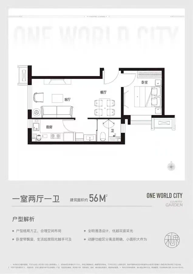 56㎡一室两厅一卫
