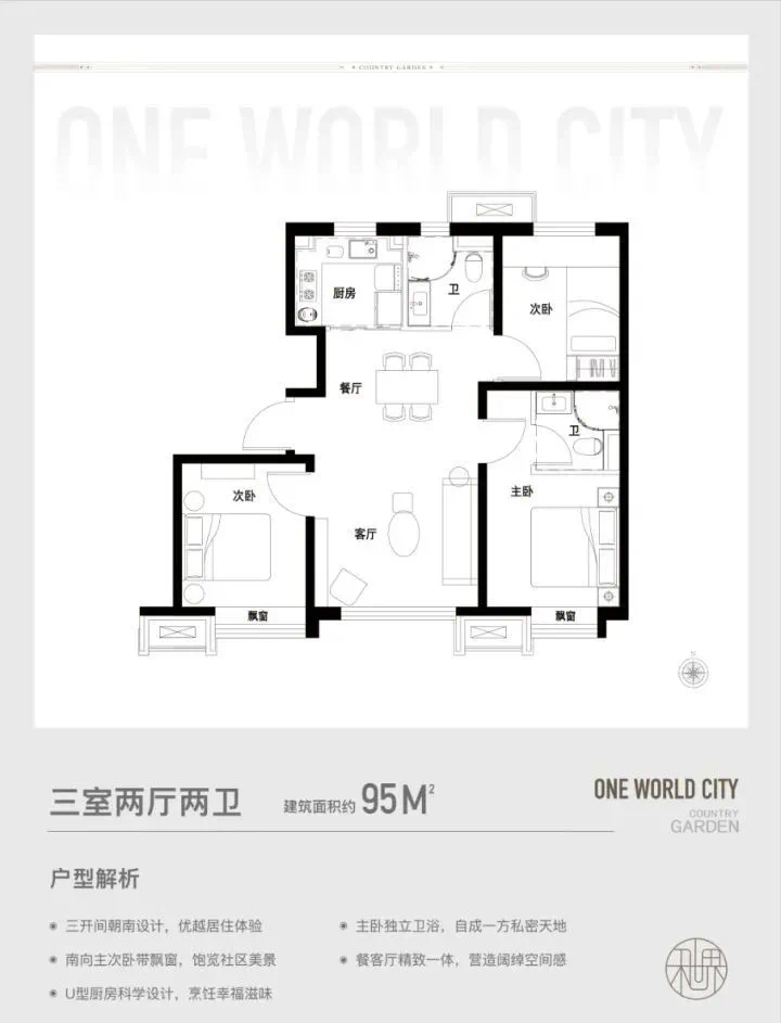 南向三面宽户型。入户视野开敞,客厅,主卧套,次卧朝南,主次卧带飘窗,北向次卧面积也不小。是用起来不错的户型。