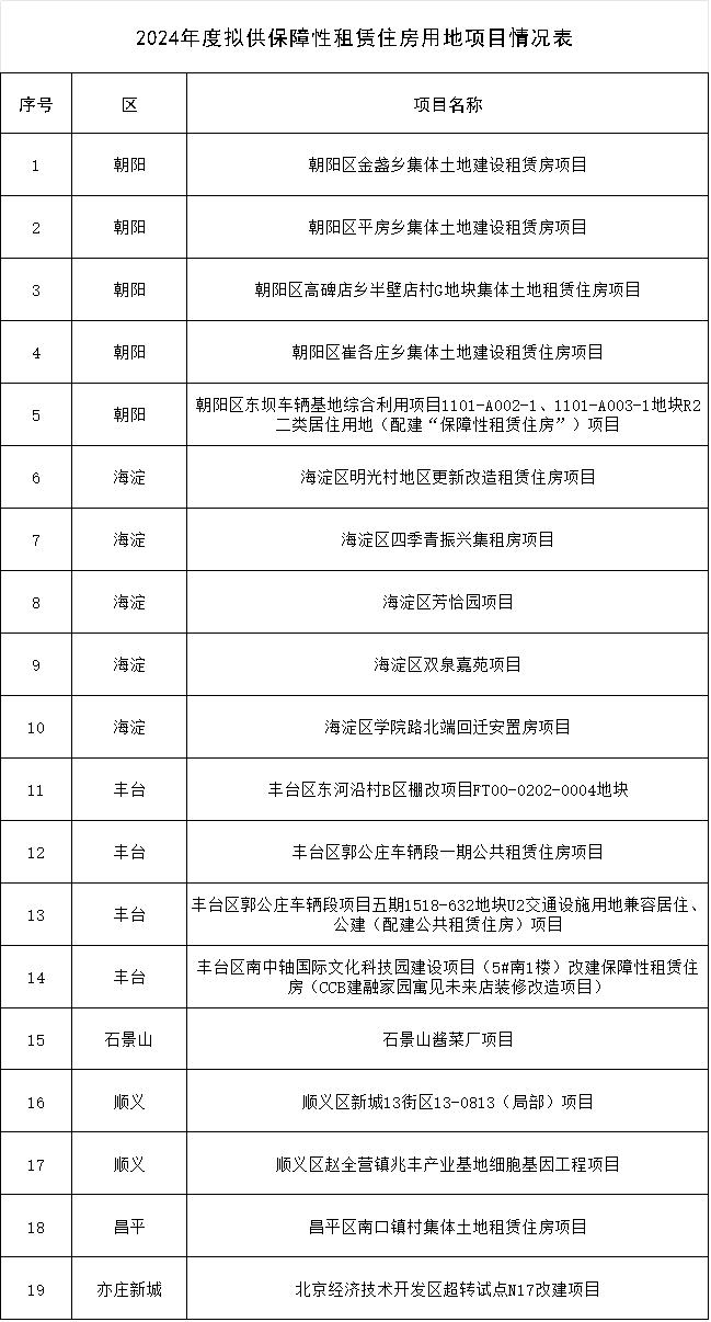 2月28日,北京市规划和自然资源委员会发布2024年度拟供保障性租赁住房用地项目信息。