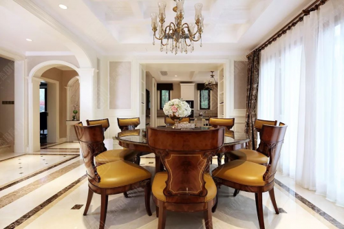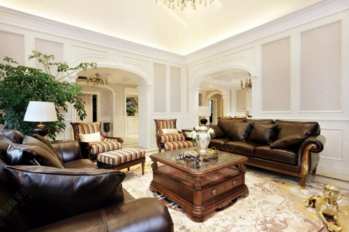 星杰设计师的设计巧思不止一处,如把客厅与餐厅之间的墙拆除,用美式拱形梁连接,与原先建筑呼应的同时让客厅变得开阔;利用反光灯带将客厅护墙与吊顶衔接,来突出吊顶……另外,原先花园大门正对室内大门,利用车库将花园到大门连接,让主人从入园到进屋的动线更为流畅舒适。