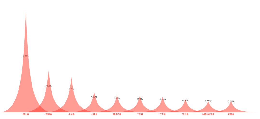 但就省份而言,这些人群主要去往河北省、河南省、山东省。就城市而言,主要去往保定市、廊坊市、邯郸市等,TOP20的城市占比近10%。