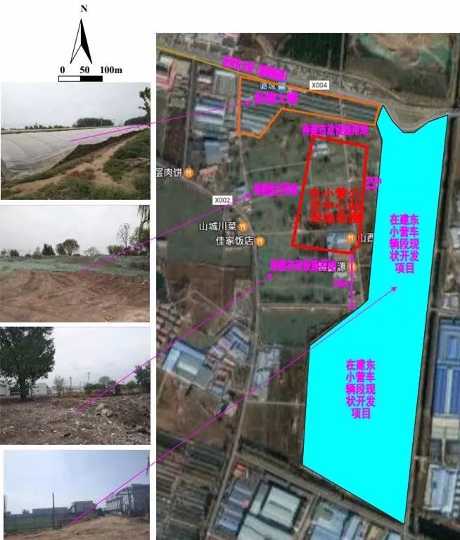 东至车辆段西侧路,隔路为在建的东小营车辆段现状开发项目,该项目包含住宅楼和办公楼;