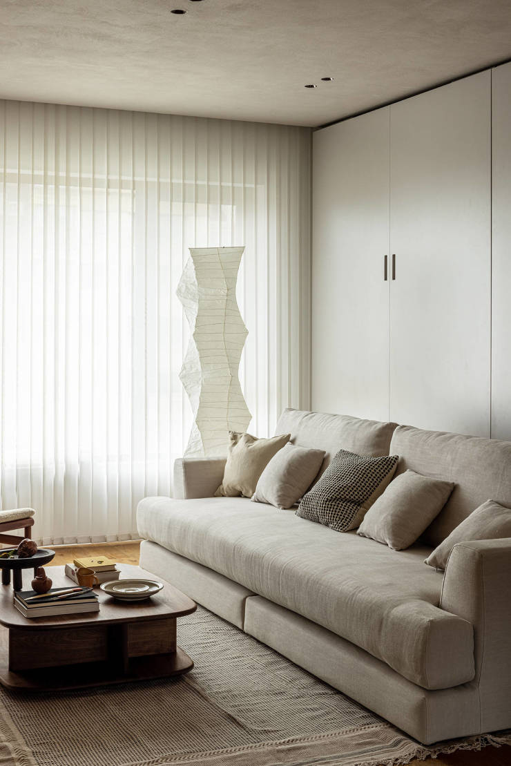 立面一角像书页般翻开,作为书香客厅的开篇,也为入室带来别致的仪式感。开放式的格局,造就书香与茶香交织的静雅空间,质朴中显露当代,简洁中蕴含巧思。