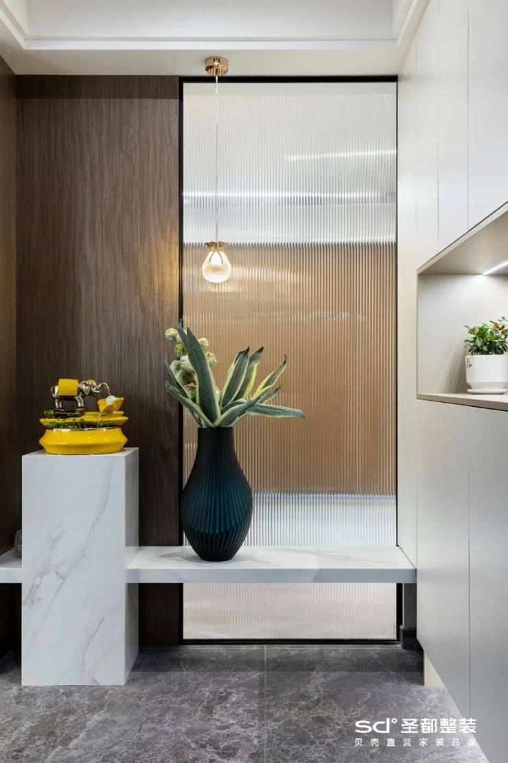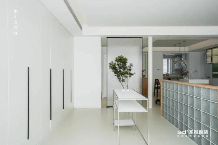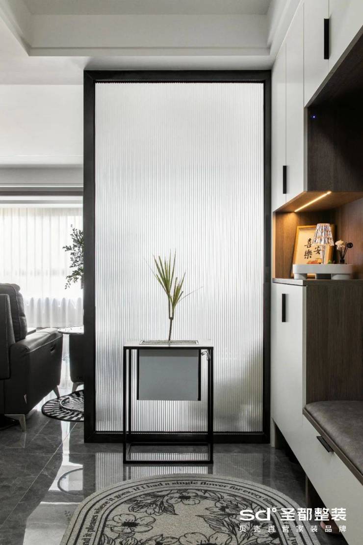 长虹玻璃隔断自带朦胧美感,阳光探入时,光影绰绰的律动为空间注入灵动与仙气。