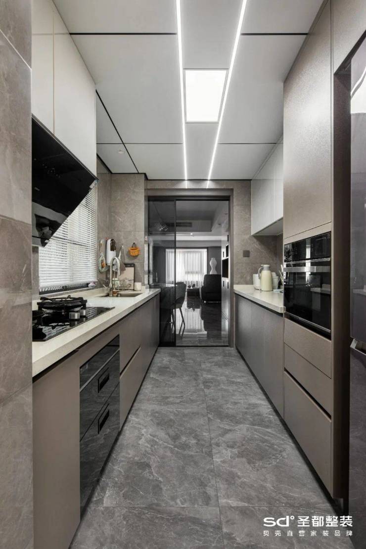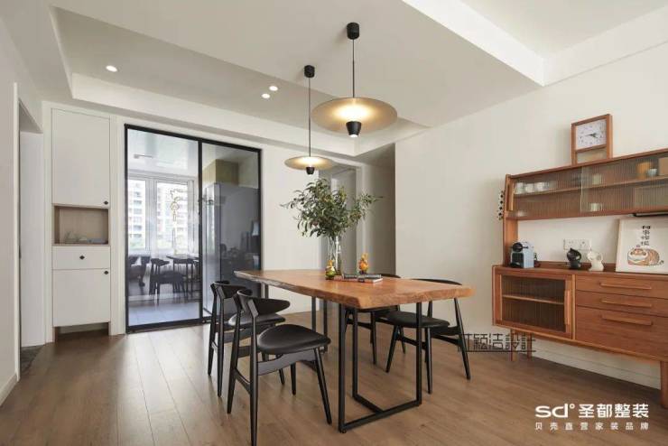 玻璃移门也是常见的半开放的实现样式,多用于厨房与餐厅的连接区域。