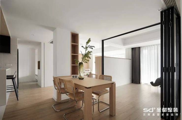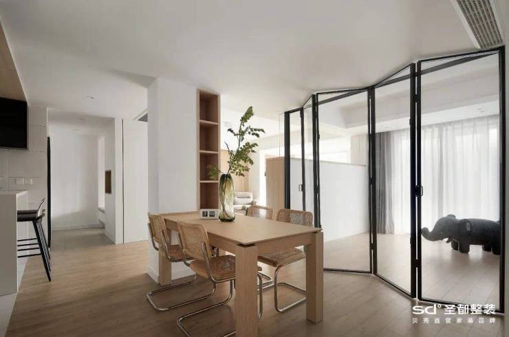 应用上折叠门,打开是完全流通的空间状态,关上则是各自独立的区域,还不会削弱空间采光度。