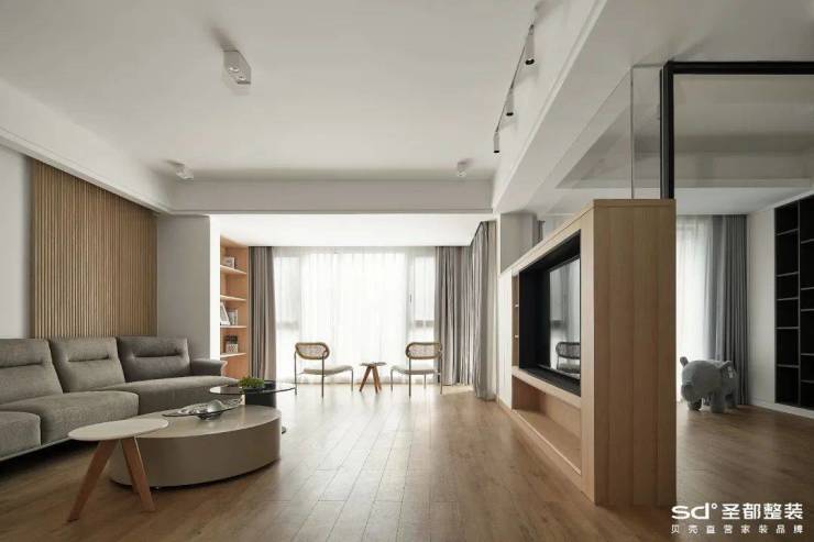 开放式设计是通过“砸墙(非承重墙)+不装门”的形式,让各功能区之间没有任何阻隔;半开放式设计则是通过设计规划,实现各功能区可开可合的状态,灵活性强。