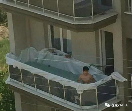 看!如果卫生间实在放不下,阳台也是个泡澡的好地方,还能顺便晒晒太阳。