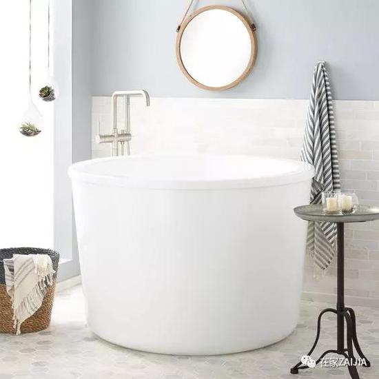 亚克力的材质虽然便宜,可塑性强,可以做的样式很多,但是很容易变色,也不好清洗,还很容易留有划痕,耐压能力差(家居君不是很喜欢)。咱们应该见过很多这样的亚克力小浴缸,别看小,因为深度很深,完全能泡得很舒服。如果不在意材质,自家卫生间又很小,可以选择这样的小浴缸。