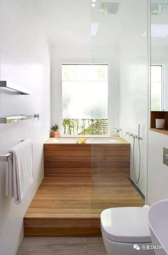 大家可以回家规划下自家的卫生间。必要的时候,缩小洗漱、马桶区的面积,能挤出来一个泡澡的地方。