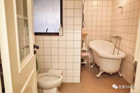 屋主安心的卫生间就很小(大约3㎡),而且形状不规则,但是也实现了浴缸梦!就放了个这样的1.2米长的浴缸,看着很不错哦。
