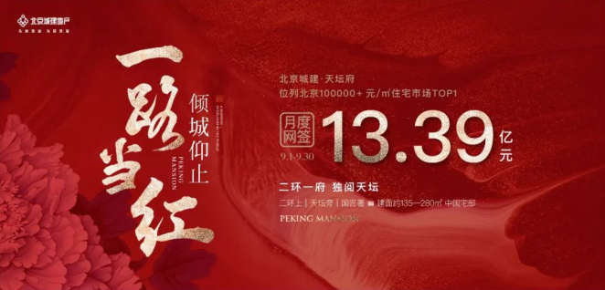 9月底,北京住宅成交市场放榜,北京城建·天坛府一骑绝尘,以13.39亿的销售战绩位列10万+高端项目榜单TOP1。