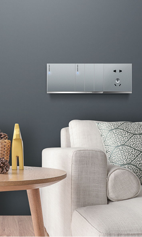 2018年10月,家的隆重推出V7高级灰系列,掀起了“高级灰”家装流行潮。行业里其他品牌,也跟随者推出高级灰开关插座。现代流行元素“高级灰”与大面板的创造性结合,让家的开关更时尚、大气。V7高级灰系列,迎合了大众化、个性化需求!