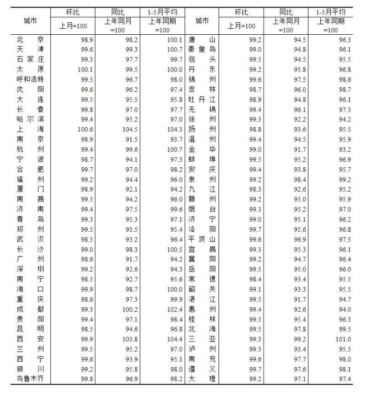 5月70城房价出炉:2城新房价格环比上涨