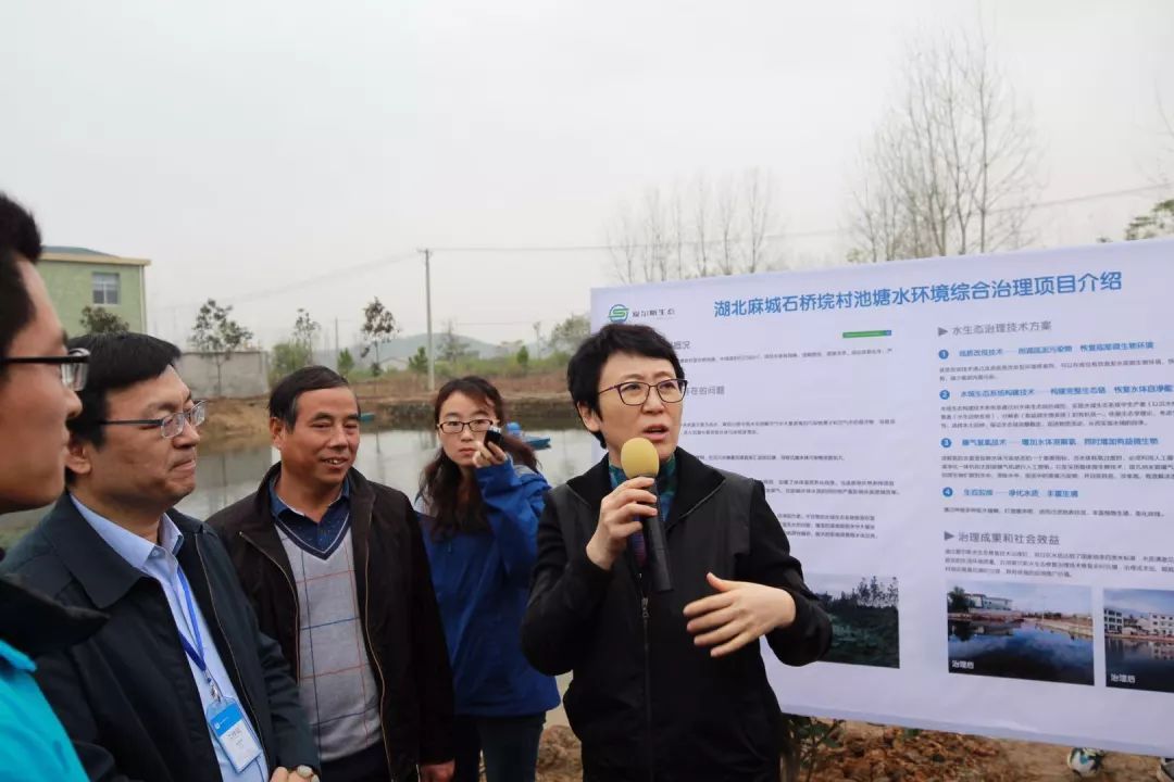 石桥垸村是住建部美丽宜居乡村建设共同缔造示范试点,由中国中建设计集团主持规划设计,北京爱尔斯生态环境工程有限公司负责农村坑塘水环境综合治理。走进麻城市阎家河镇石桥垸村,黄艳首先参观改造后的村史馆,与村干部交谈,了解脱贫攻坚和共同缔造等情况,并听取了中建设计集团公司脱贫攻坚和美丽宜居乡村建设共同缔造示范村建设阶段成果汇报。