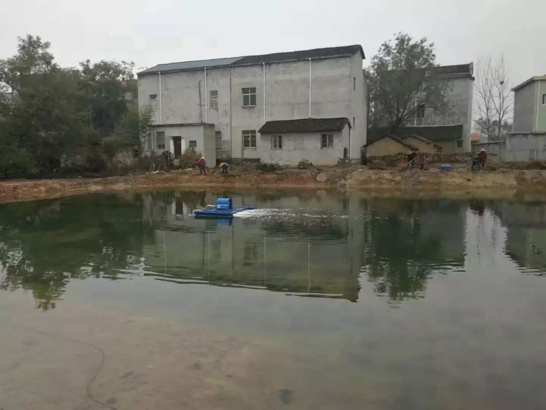 湖北麻城石桥垸村老村部北侧池塘,水域面积约2389 m2。项目水体有异味,透明度低,漂满浮萍,岸边杂草丛生,严重影响水体感官效果。采用爱尔斯生态底质改良、水域生态系统构建、曝气复氧和生态驳岸一系列技术手段,实现对项目水体污染治理以及水生态修复。短短一个月内,项目水质清澈见底、无异味、无蓝藻,达到地表四类水标准,显著提升了周边居民的生活环境质量。村里老人们都纷纷表示:“过去,这原本是个臭水塘,自从爱尔斯公司给我们治理后,水变清了,臭味也没了,家门口的环境越来越美了。”