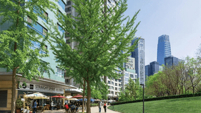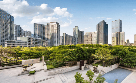 仔细观察会发现,在设计当初,CBD面向主路最外一圈是写字楼和酒店,但中心区内部却规划了绿植茂密的公园和楼间距舒适的住区,形成“开放街区与封闭组团”相结合的空间格局,由此实现了大隐于市的独特居住体验。