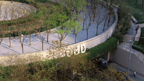 这片公园见证了北京 CBD的高速发展,叫“CBD 历史文化公园”,拥有浓郁的人文气息。整座公园占地约 2.5 公顷,空中花园式的悬浮立体绿化,以中心广场的台地结构规划了大量公共步行空间,广场四周有多条登山步道,巧妙的设计令整个公园景观别具一格。