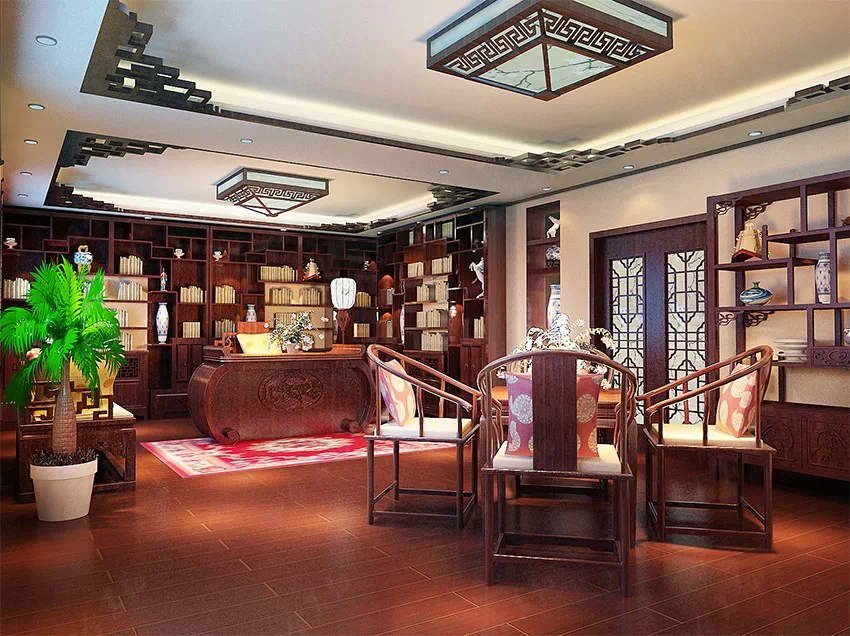 整体氛围上,显示出清雅与高贵。洁白的墙面,精美的灯饰,如镶嵌在房顶上的宝石,闪烁着光芒。行走其中,书架上的善本与书桌上的文房四宝,在光辉照耀下,使人不难感受到一种诗书香的气息;驻留片刻,更会被其内敛稳重的格调所吸引,自内心生发出一种美的享受。
