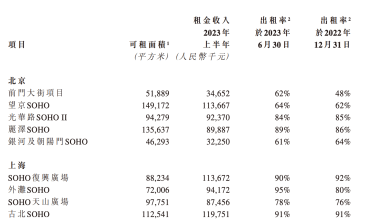 今年上半年,SOHO中国的租金收入约8.19亿元,投资物业平均出租率已企稳并恢复至约79%。